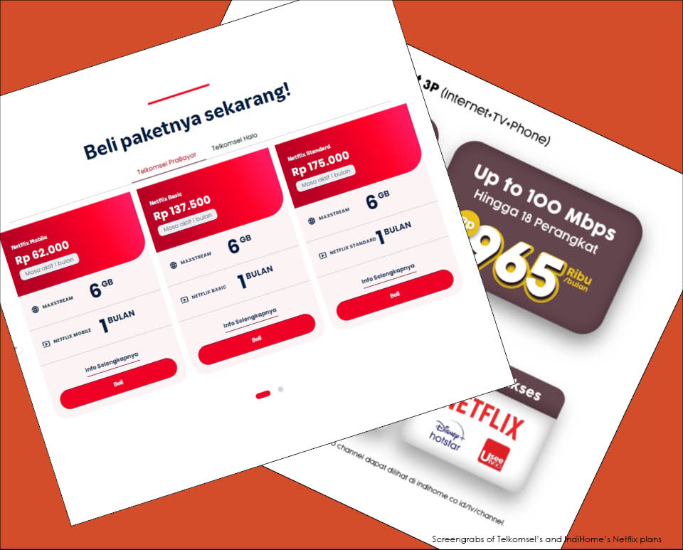 Netflix has struck a new deal with Indonesia’s Telkom, bundling the streaming service with broadband data in six packs that range from IDR62,000/US$4…