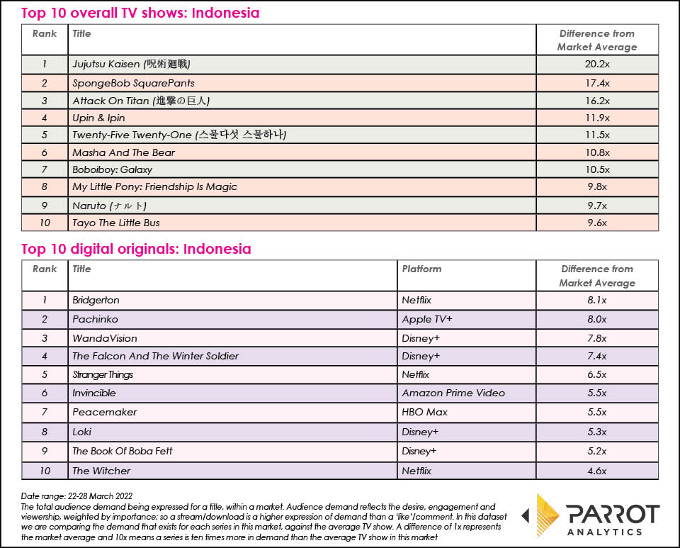 Animation swept demand in Indonesia for the week of 22-28 March, with a top 10 list of titles mixing Japanese anime and classic U.S. animated…