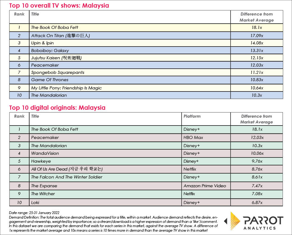 Disney+’s "The Book of Boba Fett" dominated demand across all platforms in Malaysia for the week of 25-31 January, beating even blockbuster cult…