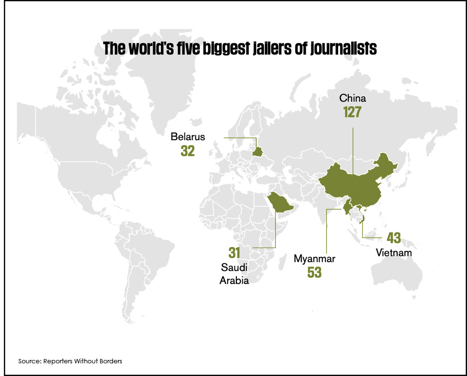 The number of journalists and media workers currently detained around the world jumped 20% in the past 12 months, ending 2021 at a record high, the…