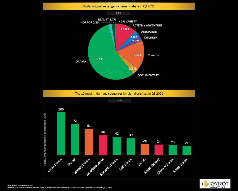 Drama content – and particularly crime drama – is a favourite among Indian audiences, according to data science company Parrot Analytics, which shows…