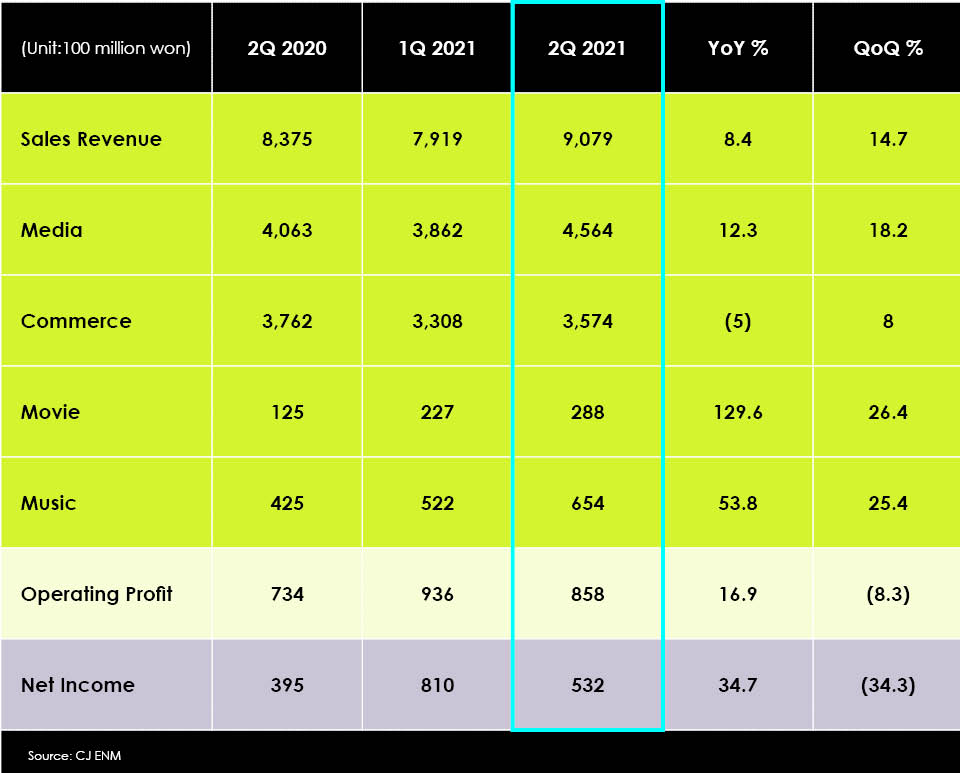 Korea’s CJ ENM reported a 35% increase in net income to KRW53.2 billion/US$46.6 million for the second quarter of this year, saying today that…