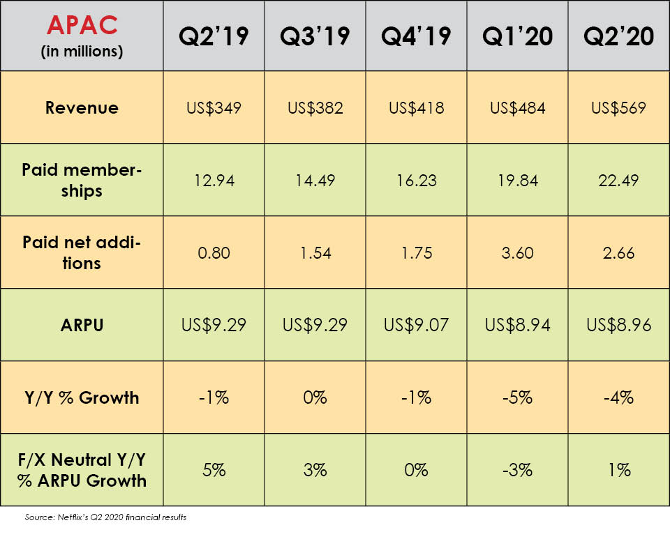 Netflix’s paid subscribers in Asia Pacific have increased by 73.8% in the past year to 22.49 million from 12.94 million in Q2 2019 and are up 13.4%…