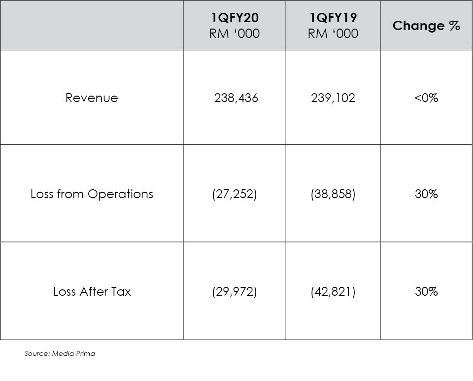 Malaysian media company Media Prima cut losses by 30% in the first three months of this year, reporting an after-tax loss of RM$29,972,000/US$7…
